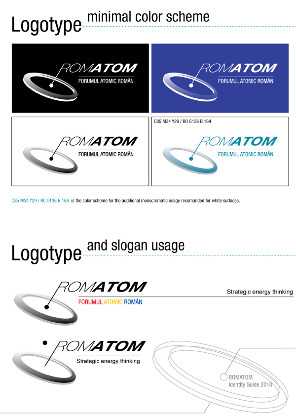 Client: Romatom SAPartner: Strategicom ConsultThe task was to give a new image to ROMATOM's graphic expression in the field of Romania's leading atomic organizations and active specialist.The logotype take the center o the atom and anchors in a beam of enegry from that center. One electron's orbit is kept to ground the logotype and to create dynamism. -